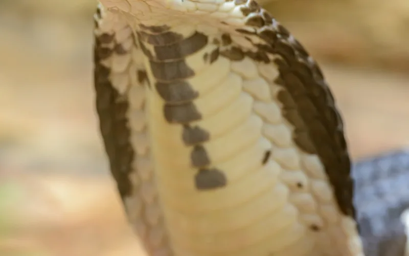 The spectacled cobra (Naja naja) earned its name from putting on a shown when it feels threatened. The snake is able to administer a neurotoxic venom that can be lethal in 20-30% of cases if left untreated. It has a rather high frequency of human snake bites due to residing in human-occupied areas. Paralysis, convulsions, headache, nausea, and vomiting are some of the signs of envenomation, which can be treated with antivenom injections.